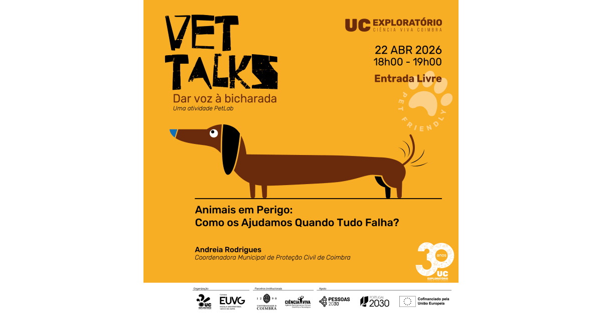 Junte-se a esta conversa, na próxima quarta-feira, dia 22 de abril, a partir das 18h, no Exploratório de Coimbra, com entrada livre, sem inscrição, num evento pet friendly.