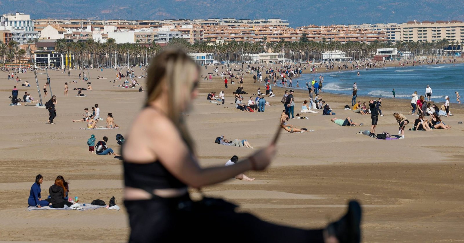 Em Barcelona, a Praia La Barceloneta foi um ponto-de-encontro muito concorrido, num dia que até podia passar por outro qualquer no verão, sem contar com a temperatura da água.