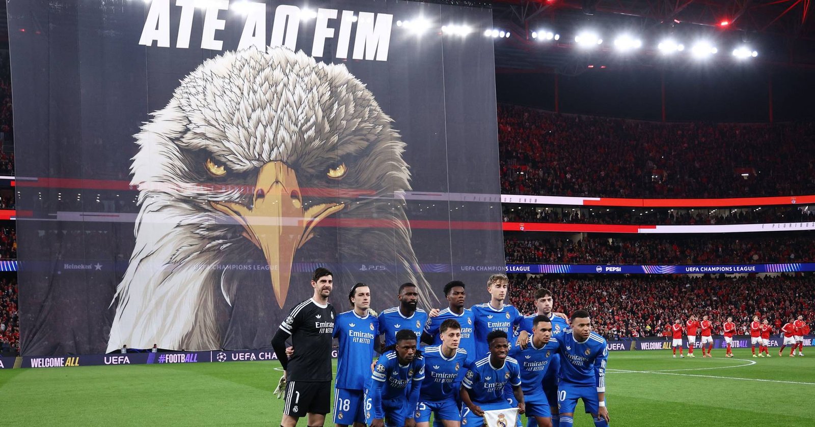 Militão, Ceballos, Bellingham e Rodrygo também falham o encontro desta quarta-feira. Na primeira mão do ‘play-off’, o emblema espanhol derrotou as ‘águias’ por 1-0.