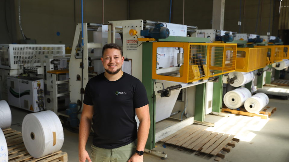 A Teckpack fabrica sacolas plásticas, atendendo grandes redes de atacarejos, farmácias e outros comércios. Ao todo, são mais de 1,8 mil clientes no Brasil. Fonte: Gazeta do Povos