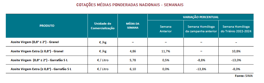 Cotações – Azeite e Azeitona – 2 a 8 de fevereiro de 2025