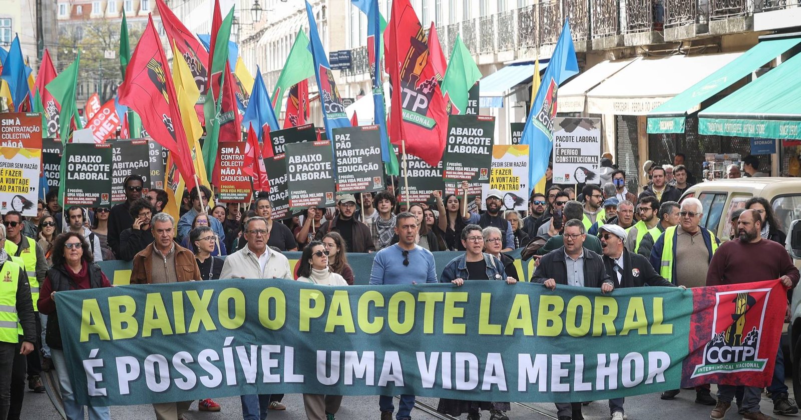 “Exigimos a retirada do pacote laboral, exigimos discutir a melhoria das condições de vida dos trabalhadores com propostas concretas de alteração à legislação que hoje está em vigor para melhorar as condições de vida de quem trabalha”, acrescentou Tiago Oliveira no início da manifestação, ainda no Cais do Sodré.