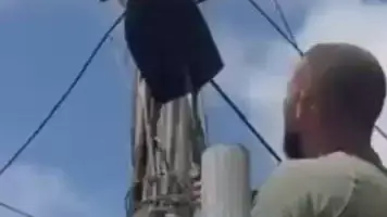 Várias publicações surgem acompanhadas de um vídeo onde se vê um homem, vestido de polícia, a retirar dispositivos de videovigilância fixados em postes, com recurso a uma pá.
