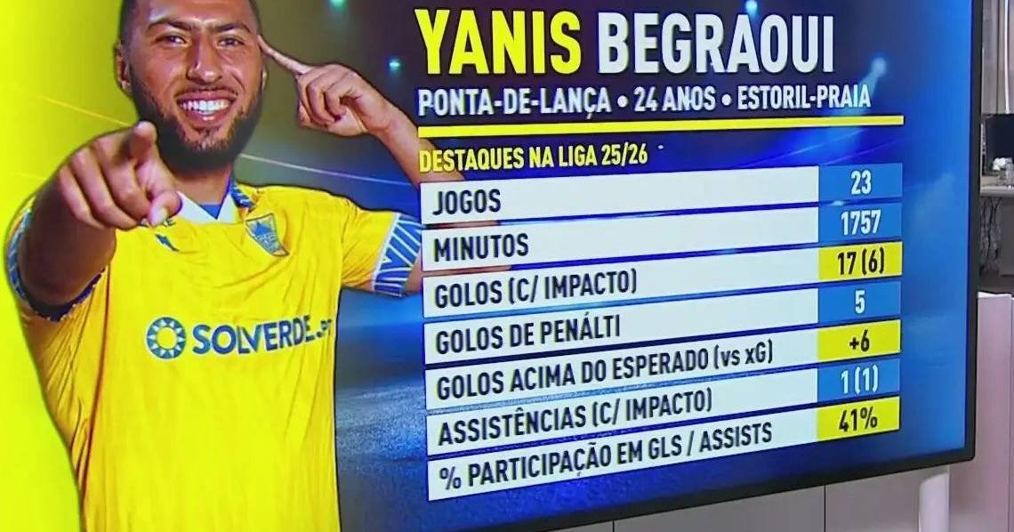 Em parceria com a GoalPoint, é possível verificar que, por exemplo, na posição de ponta de lança, Begraoui é um dos promissores da Liga Portuguesa.