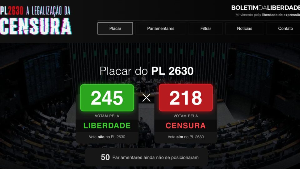Um dos principais elementos para municiar a população na guerra contra a censura é o Placar do PL 2630, que registra a intenção de voto de cada deputado. Fonte: Gazeta do Povos