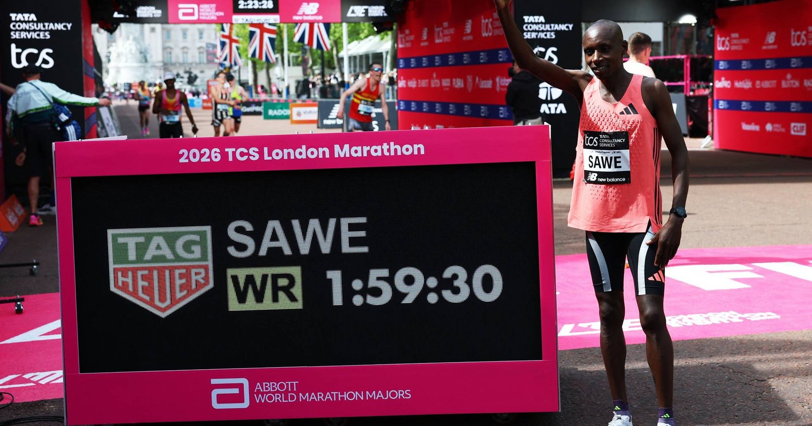 Sawe, de 30 anos, conquistou a emblemática corrida londrina pela segunda vez consecutiva, depois do triunfo em 2025, quando também venceu a Maratona de Berlim.